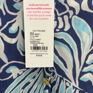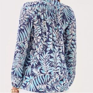 Brand New with Tags luxurious Lilly Pulitzer Elsa Silk Top in the prettiest Sapphire Pool/Summer Shorelines print! Features include easy fit, flowy blouse with shiny gold buttons and bracelet length sleeves. This elegant silk top can be dressed up or down!! Pairs well with casual or dress pants, shorts or skirts as a perfect wardrobe staple! Roomy, soft fit for ultimate comfort and endless chic style!!🌺🌺