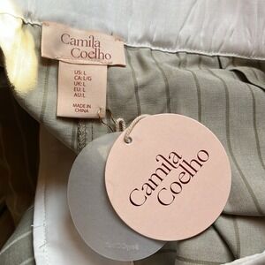 Camila Coelho Women's Olive Green Pinstripe Wide Leg Pleated Pants sz L Career