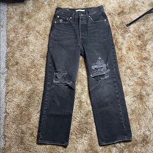 Levi’s Premium Quality Clothing 501 Ribcage Straight Ankle Black Distressed Jean