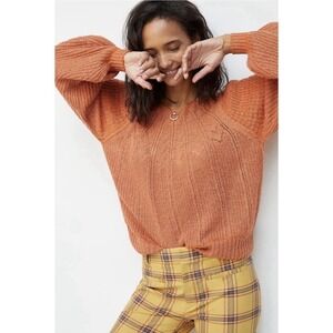 Anthropologie Maeve Lindsay Pointelle Orange Wool Alpaca Knit Sweater