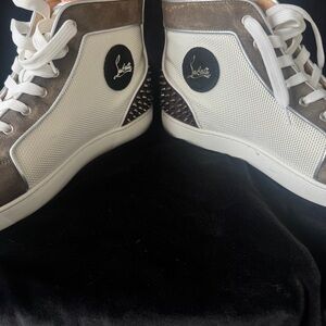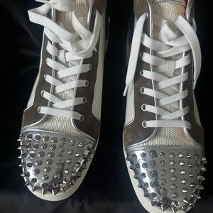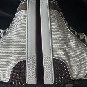 Turn heads in these iconic Lou Spikes 2 Flat high-tops from Christian Louboutin. This pair features the brand’s unmistakable edgy-luxury aesthetic with a mixed-material upper and signature spike detailing.