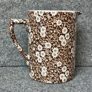 Antique Staffordshire brown Transferware Calico measuring pitcher Ironstone jug