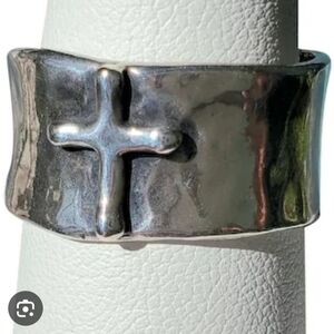 Wide Band Rustic Hammered Silver Cross Ring Womens Size 7.5 Fashion Jewelry