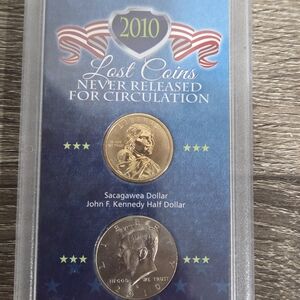 2010 Lost Coins Never Released for Circulation Sacagawea $1 Kennedy Half Dollar. These have never been out the packaging. Please look closely at pictures. The product is a set of two circulated 2010 Sacagawea $1 coins and a Kennedy Half Dollar that were never released for circulation. These coins were minted in Philadelphia and are in business strike type. They are from the United States and are ungraded and uncertified. This collection would be a unique addition for collectors interested in rare and unique coins from the United States.