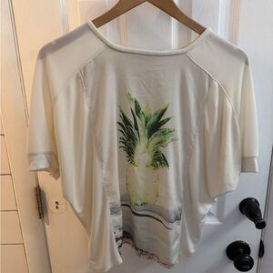 Embrace a tropical vibe with this Zara cream top featuring a vibrant pineapple print. Perfect for casual outings.