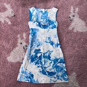 Maeve Anthropologie Marbled Waters Dress Blue White Sleeveless Silk Blend Size 0