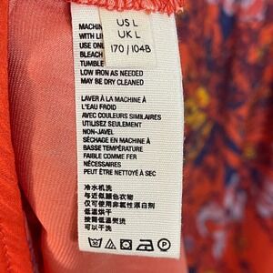 Free People Orange Floral Boho Peasant Blouse Top Long Sleeve Square Neck