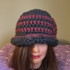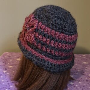 Elevate your style with this elegant crochet hat. The black and cherry design adds a chic touch to any ensemble. Warmest winter medium thick acrylic yarn for warmth hat clean never worn new wash suggestion in tied pantyhose sock or cloth laundry bag to prevent piling fuzz and maintain form and beauty. Moveable flower.