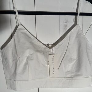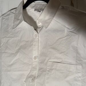 White Cropped Button Down Collared Shirt Set with Matching Cropped Tank