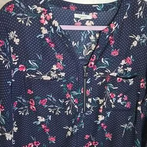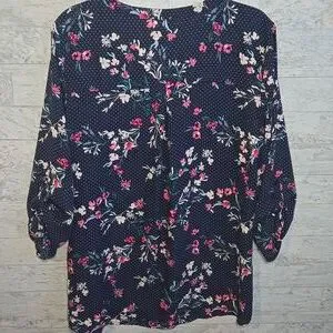Maurices Blouse Navy Floral Pink Polka Dot Womans XL