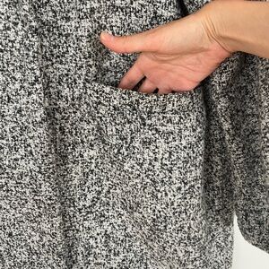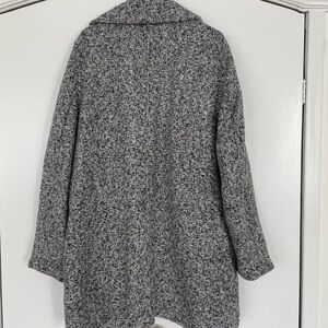 Steve Madden chic and cozy pea coat Mix of black and white Very soft and heavy Perfect for fall/winter/spring Goes down to about mid thigh Double snap enclosure at the waist 100% polyester Size XL Like new