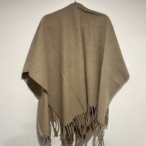 Elegant tan shawl with fringe detailing. Perfect for layering.