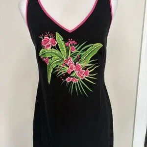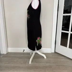 CJ Laing Sleeveless Dress Celery Pink Sz 6 tropical flowers colorful embroidery