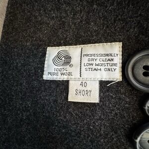 Size: 40 SHORTMaterial: 100% Pure WoolColor: Charcoal GrayStyle: Double-Breasted with Peaked LapelsCondition: Pre-owned, excellent structure