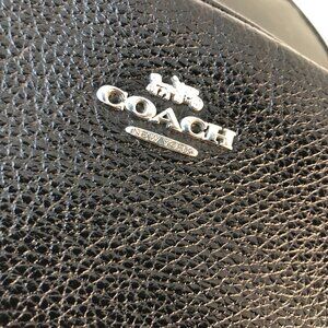 Elevate your everyday style with this chic and practical Coach Court Backpack. Crafted from durable nylon and luxurious refined pebble leather, this black backpack features sleek silver-toned hardware and the iconic Coach logo. It offers ample storage with a main double-zip compartment, an exterior front zip pocket, and multiple interior pockets to keep you organized on the go. The adjustable shoulder straps ensure a comfortable fit. This versatile bag is perfect for daily use, travel, or as a stylish alternative to a traditional purse.