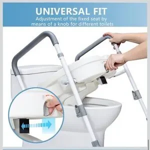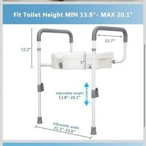 HEIGHT & WIDTH ADJUSTABLE:The width between arms can be adjusted to 21.3" & 23.6", and the height of the support legs can be adjusted to fit toilets from 13.5" to 20.1" in height.