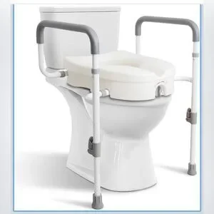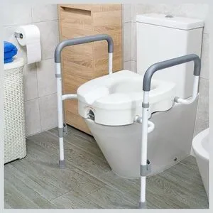 Adjustable White Raised Toilet Seat With Safety Rail