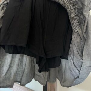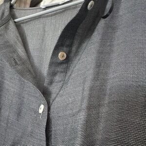 Chic tunic with smocked waist. Flowy sleeves and button detail. Perfect for versatile styling.