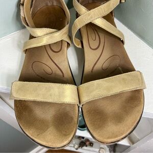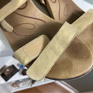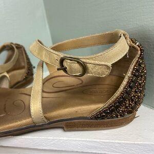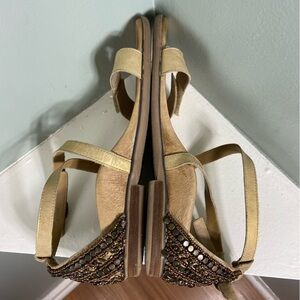 Aetrex Brenda Beaded Bronze Gold Bronze Leather Sandals Size 11 Flat Flats