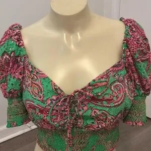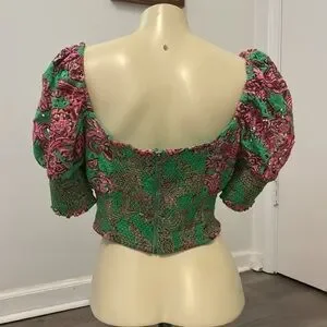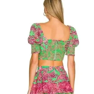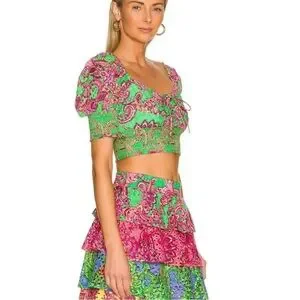 Alice + Olivia Crawford 100% Cotton Eyelet Smocked Top