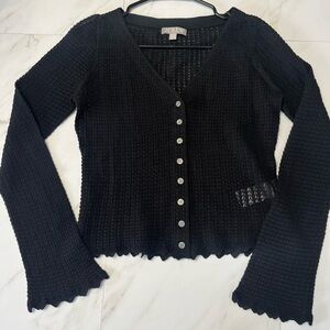 J Crew Scallop Trim Cardigan Top in Black Size XS