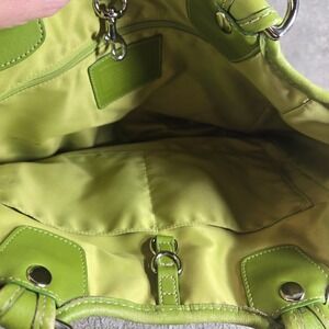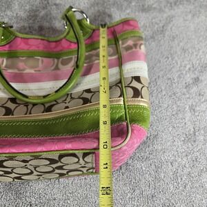 Coach Stripe Signature Monogram Purse Canvas Leather Tote Bag Pink Green