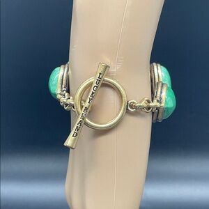 Lucky Brand Green Stone Toggle Bracelet | Southwestern Boho Gold Tone