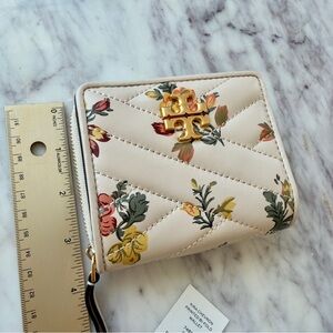 🌹 Tory Burch Rose Floral Print Kira Chevron Printed Bi-Fold Wallet