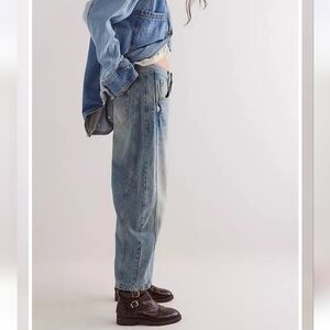 Free People Good Luck Barrel Jeans Mid Rise Distressed Relaxed Kismet 28 NWOT