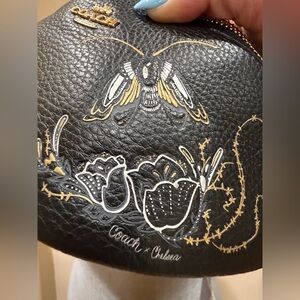 Great preused condition basically new belt bag done on collaboration with coach and Chelsea Champlain tattoo artist. This bag is super beautiful and stunning. Still has its care card inside as well. Please be advised that although the official website lists measurements of 14 1/4 (L) × 5" (H) × 41/4" (L), the actual usable space is closer to 10 × 3.5 × 4.
