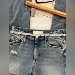 The jeans you've been praying for. A high-rise flare with a full-length inseam and a clean hem. Made from semi-rigid denim with minimal stretch, these jeans are SUPERIOR. In a faded blue wash with destroyed details. These jeans are rigid and take time to break in. MOTHER says patience is a virtue. Made in Los Angeles. Style No. 1955-259-TCF MOTHER The Super Cruiser The Confession Jeans
