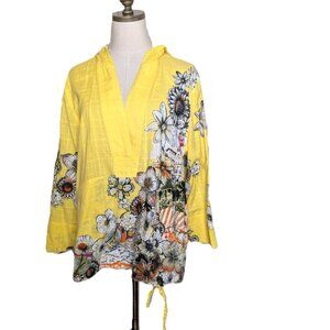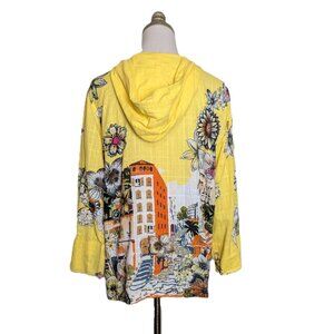 Chicos Pullover Hoodie Women's Size XL 3 Yellow Floral Cityscape Cotton Beach