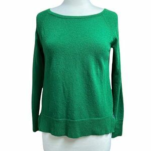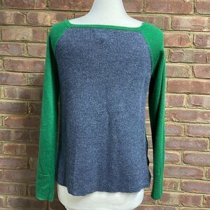 TAHARI Green & Grey Merino Wool Long Sleeve Crewneck Sweater