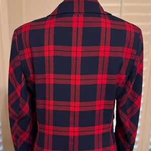 Chic red and navy plaid blazer with a tailored fit and notched lapel. Single-button front, structured silhouette—perfect for work or dressing up denim. Timeless, polished, and stylish. Excellent Condition.