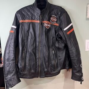 Harley-Davidson Black Leather Jacket with Orange Accents