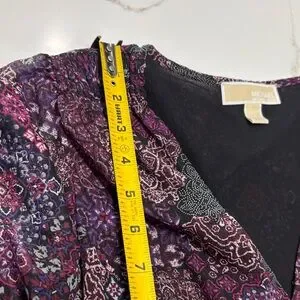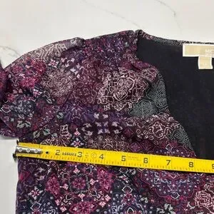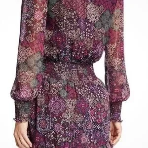 Elegant dress with floral patterns. Features long sleeves and a flattering silhouette. Pre owned excellent see pictures.