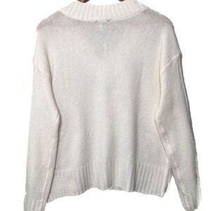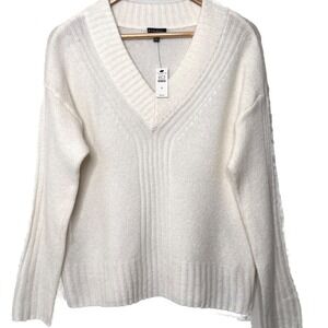 Talbots NWT Women's Wool Cream White V Neck Ribbed Knit Pullover Sweater Size M
