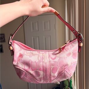 Coach Pink Signature Canvas Y2K Shoulder Bag