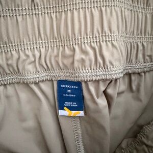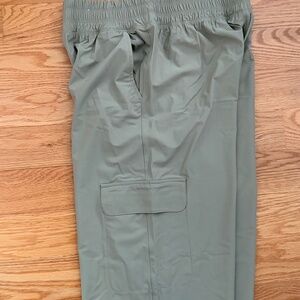 High-Waisted SleekTech Wide-Leg Cargo Pants from Old Navy. Color is Birch Leaf which is Tan/Khaki. These are great pants. I have multiple pairs. They're really comfortable & versatile. The lightweight fabric and ample pockets make them ideal for casual and active wear. Such a great fit. Good for hiking or walking, but they also look great with a top or sweater. Can be dressed up or dressed down. Easy to care for. Easy to pack. Easy for travel. The Inseam is about 30" and the rise is about 13." The leg opening at the hem is about 11.5." Size Medium..