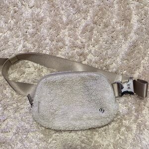 This stylish cream fleece crossbody bag offers a cozy and chic look. Perfect for casual outings, it combines comfort with fashion.