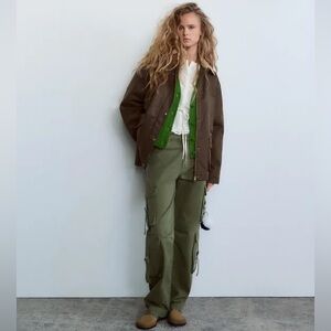 ZARA Oversized Contrast Collar Corduroy Barn Jacket Utility Coat.