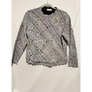 Vintage Soliel D’or Tokyo Floral Lined Ruffled Knit Top Womens Sz M whimsigoth