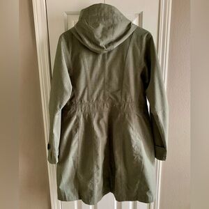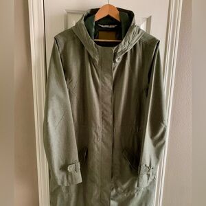 Excellent Preloved condition, with no rips, stains or holes. Beautiful olive green. Double zipper, snap closures, pockets. Great raincoat for the PNW!