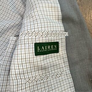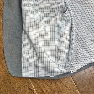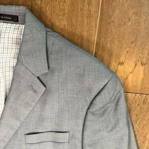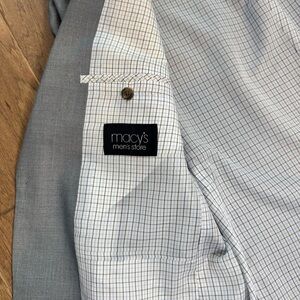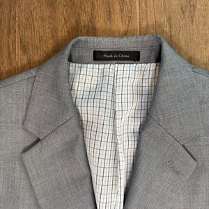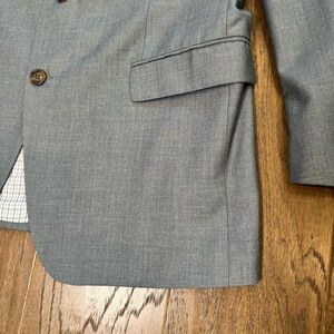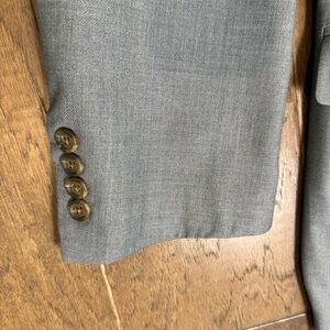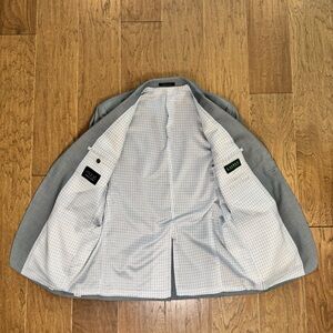 Size and material information is missing. Size is 42R (see measurements below) and it’s a high quality wool blend.