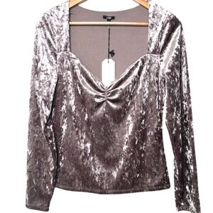 Express NWT Womens Textured Velour Ruched Sweetheart Neck Long Sleeve Top M