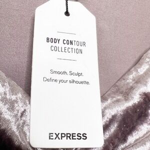 New with tag Velour ruched sweetheart neck long sleeve top by Express. Flattering sweetheart neckline with ruching detail at the center bust and long sleeves. Textured velour fabric. The 'Body Contour Collection' is designed to smooth, sculpt, and define your silhouette. New with tag. Size medium, made in Indonesia. Shell 95% polyester, 5% spandex; lining 91% polyester, 9% spandex, machine wash cold.
