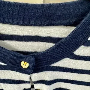 Elegant navy and white stripes. Gold button accents. Ideal for layering. Small pinpoint hole from where the tag came off. This is a JCrew Jackie cardigan. Nautical style perfect all year round.