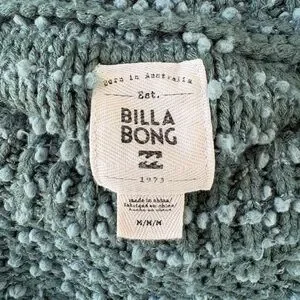 This is a stylish Billabong pullover sweater in size medium, It features an open-knit texture and bell sleeves. This pullover sweater is perfect for parties, casual wear, or a beach-inspired look. With a bohemian theme, it is machine washable and suitable for winter, fall, and spring seasons.