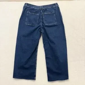 mango MNG Catherine Raw Hem High Waist Wide Leg Culotte Jeans Size 18 Dark Blue