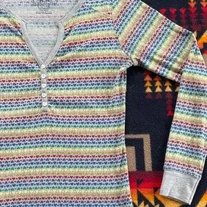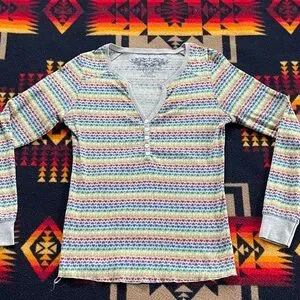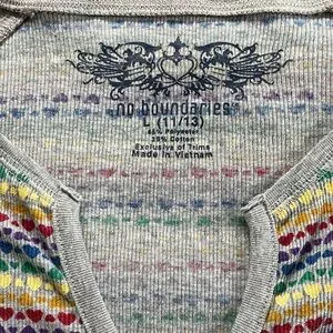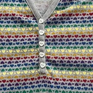 Adorable rainbow hearts Henley Y2K with heart-shaped buttons